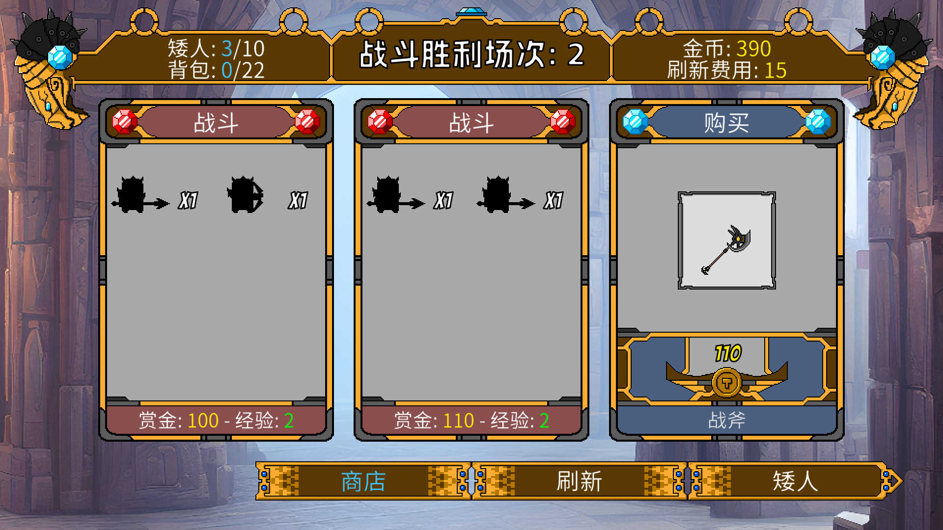 矮人军团自走棋每一场战斗结束后,玩家都可以从三个分支中选择一个前进,既可以选择打怪升级,也可以选择购买装备,有或者雇佣新的战士,当然每一种选择背后都充满了机遇与风险。