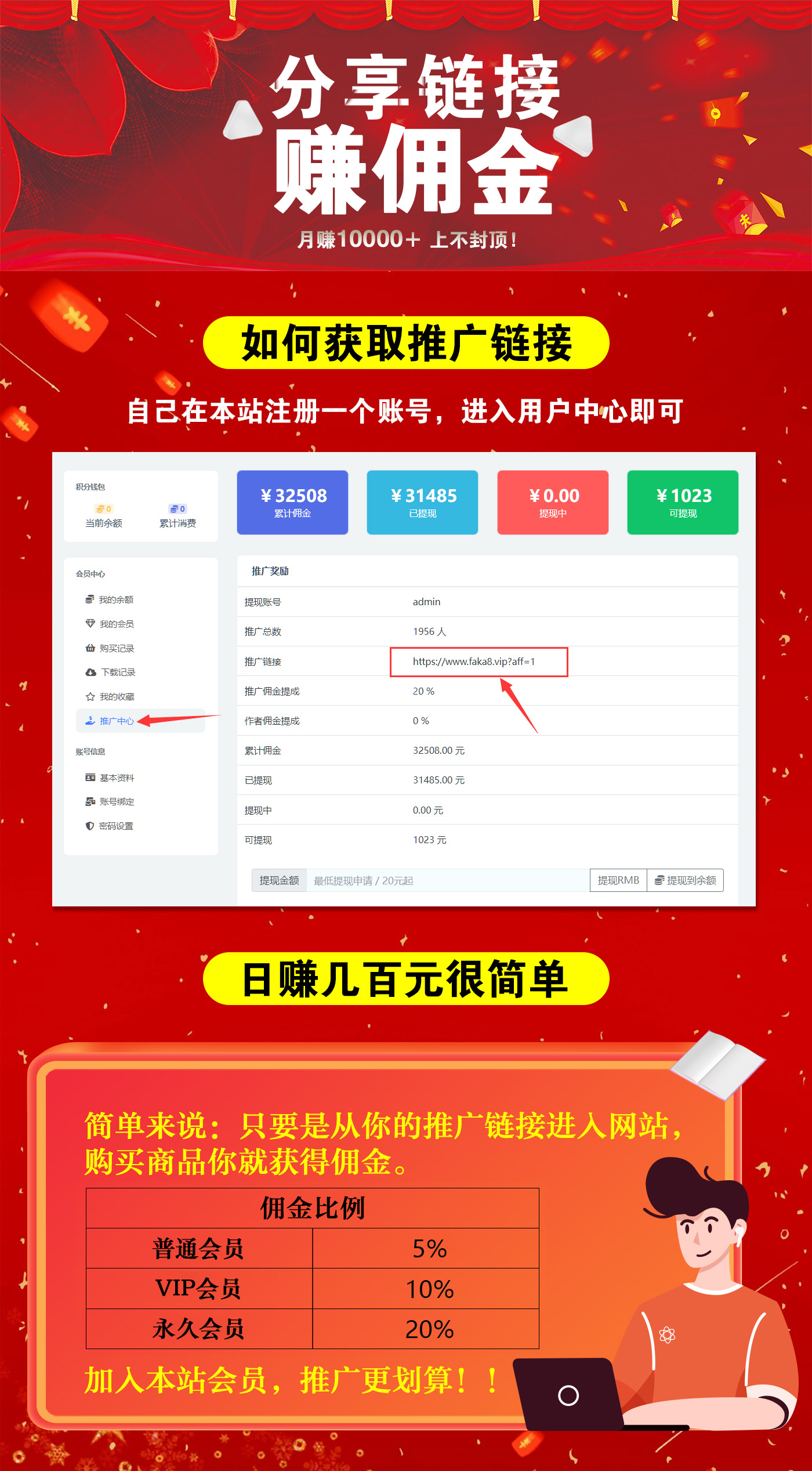4.如果您已经是永久用户,可以推广赚钱,每推广一笔您可以获得9.8的佣金,不上限,提现请联系【V:pss20999】